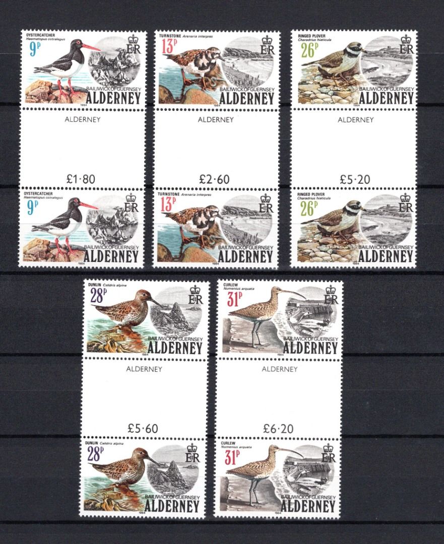 Alderney MiNr. 13-17 Strandvögel mit Zwischensteg, Satz postfrisch Tiere