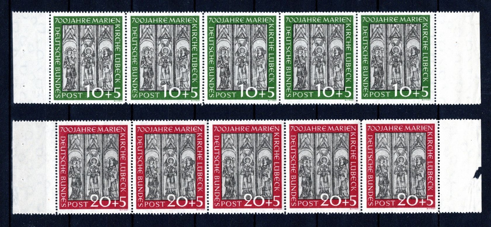 Bei MiNr. 139 ist die rechte Marke angefaltet!