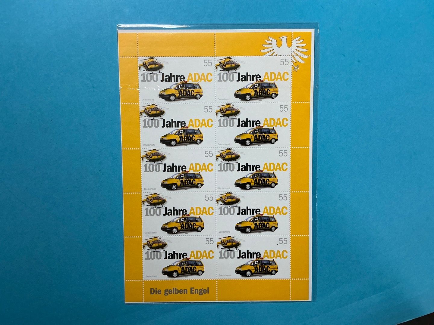 Im Rahmen eines Pilotversuches wurden Kleinbogen auch in Blister-Folien mit Kartoneinlagen verpackt verkauft! - Die Abbildung ist exemplarisch!