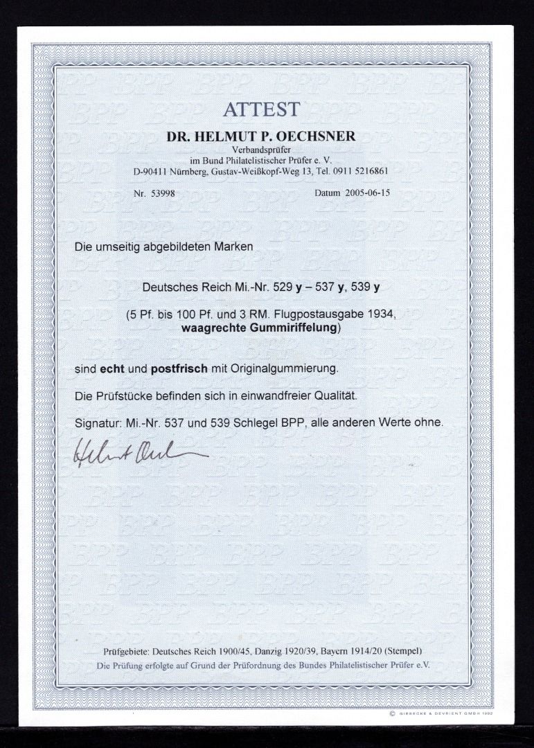 Deutsches Reich MiNr. 529-537 y + 539 y postfrisch Fotoattest Oechsner