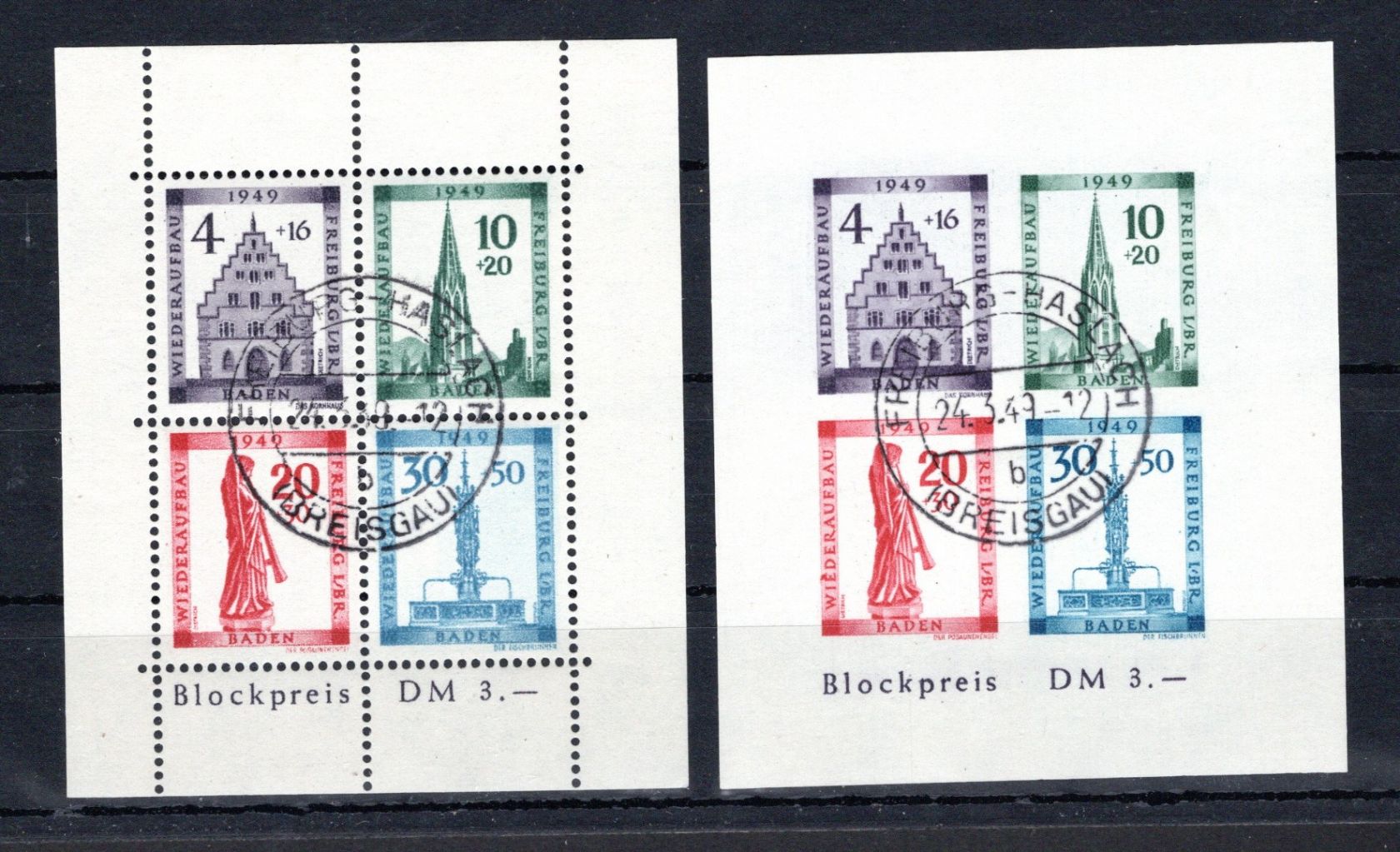 franz. Zone Baden MiNr. Block 1 A + B gestempelt geprüft Schlegel