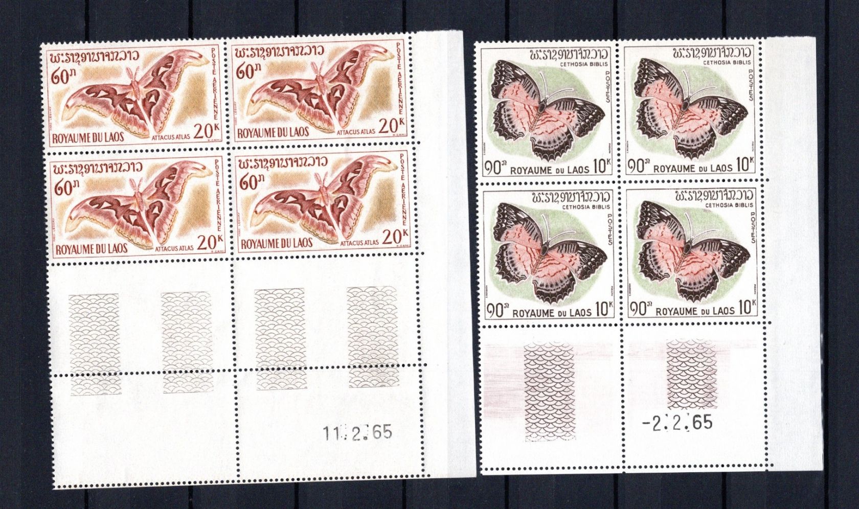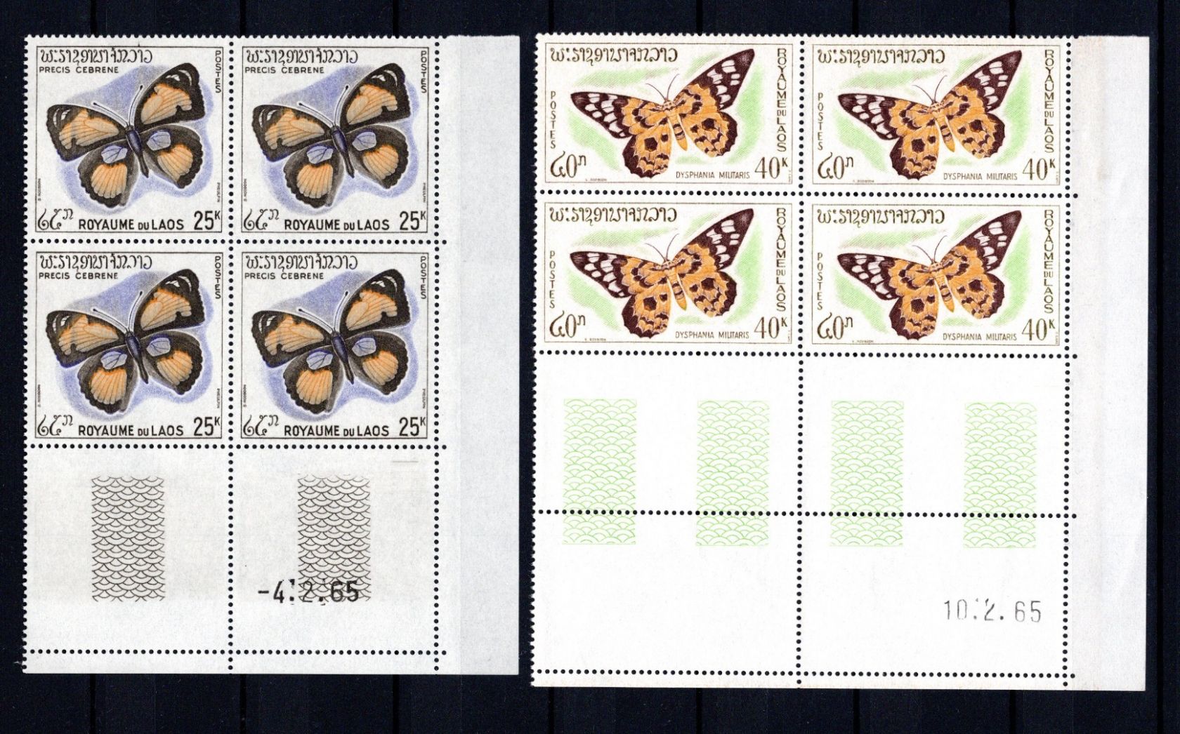 Insekten / Schmetterlinge / Nachtfalter - Satz als Eckrand-Viererblöcke je mit Druckdatum 1965