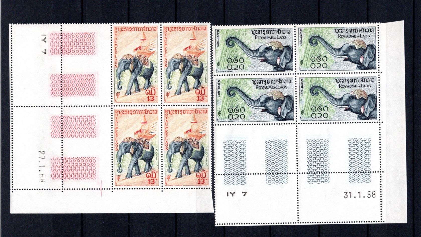 Satz als Eckrand-Viererblöcke je mit Druckdatum 1958