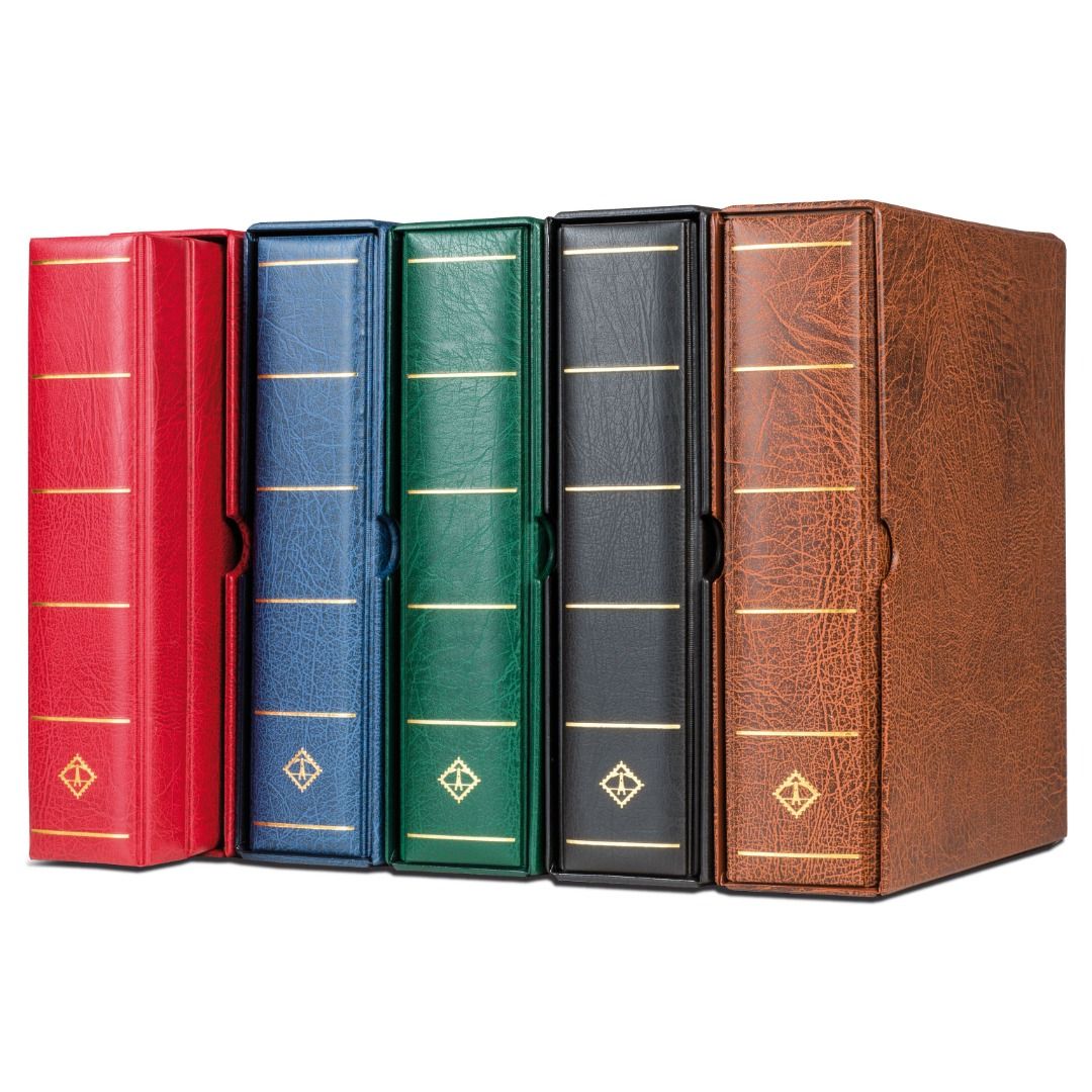 - Genarbter Kunstleder-Binder mit passender Schutzkassette.
