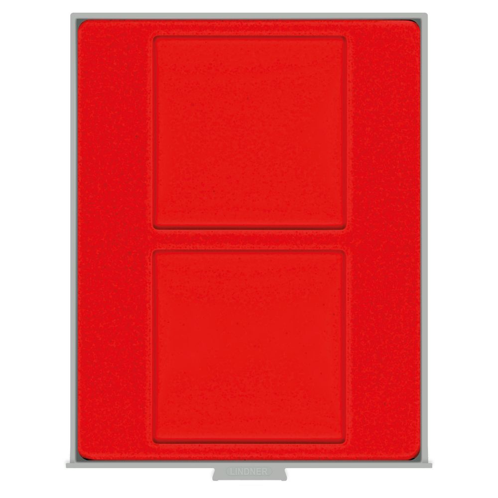 Hellrote Einlage mit 2 quadratischen Fächern 125x125 mm/Max. Füllhöhe: 18,5 mm.