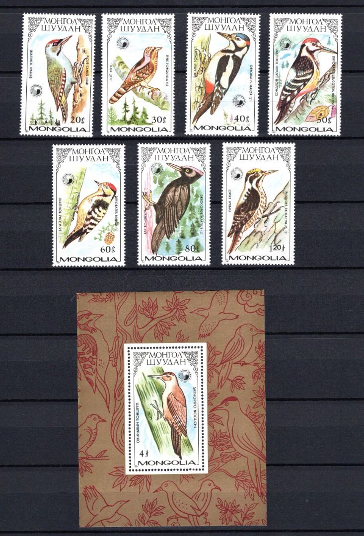 Mangolei MiNr. 1851-1857 mit Block 119 Spechte 1987 postfrisch Tiere