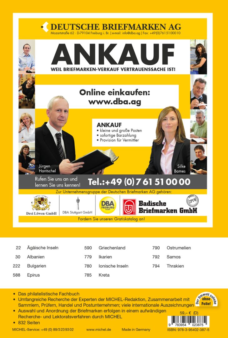 - Überprüfung und Aktualisierung der Preisbewertungen mit besonders zahlreichen Änderungen bei Ostrumelien, bei albanischen Ersttagsbriefen und vielen griechischen Ausgaben der klassischen Zeit.