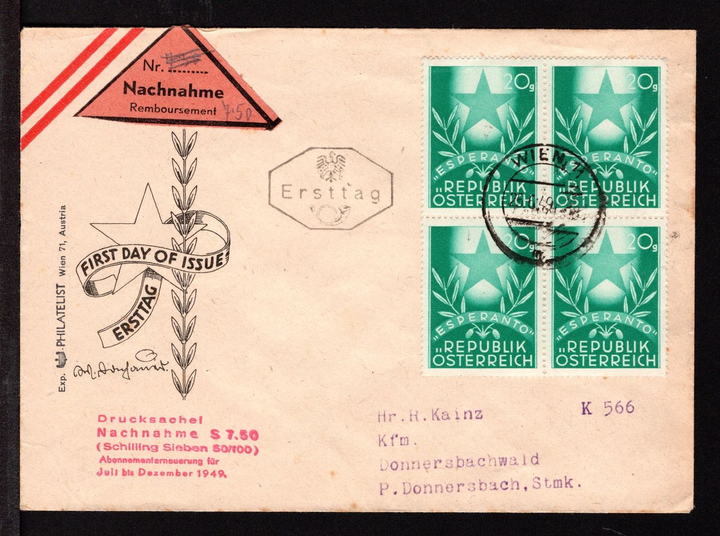 Österreich MiNr. 935 Ersttagsbriefe/ FDC 4er Block, als Nachnahme