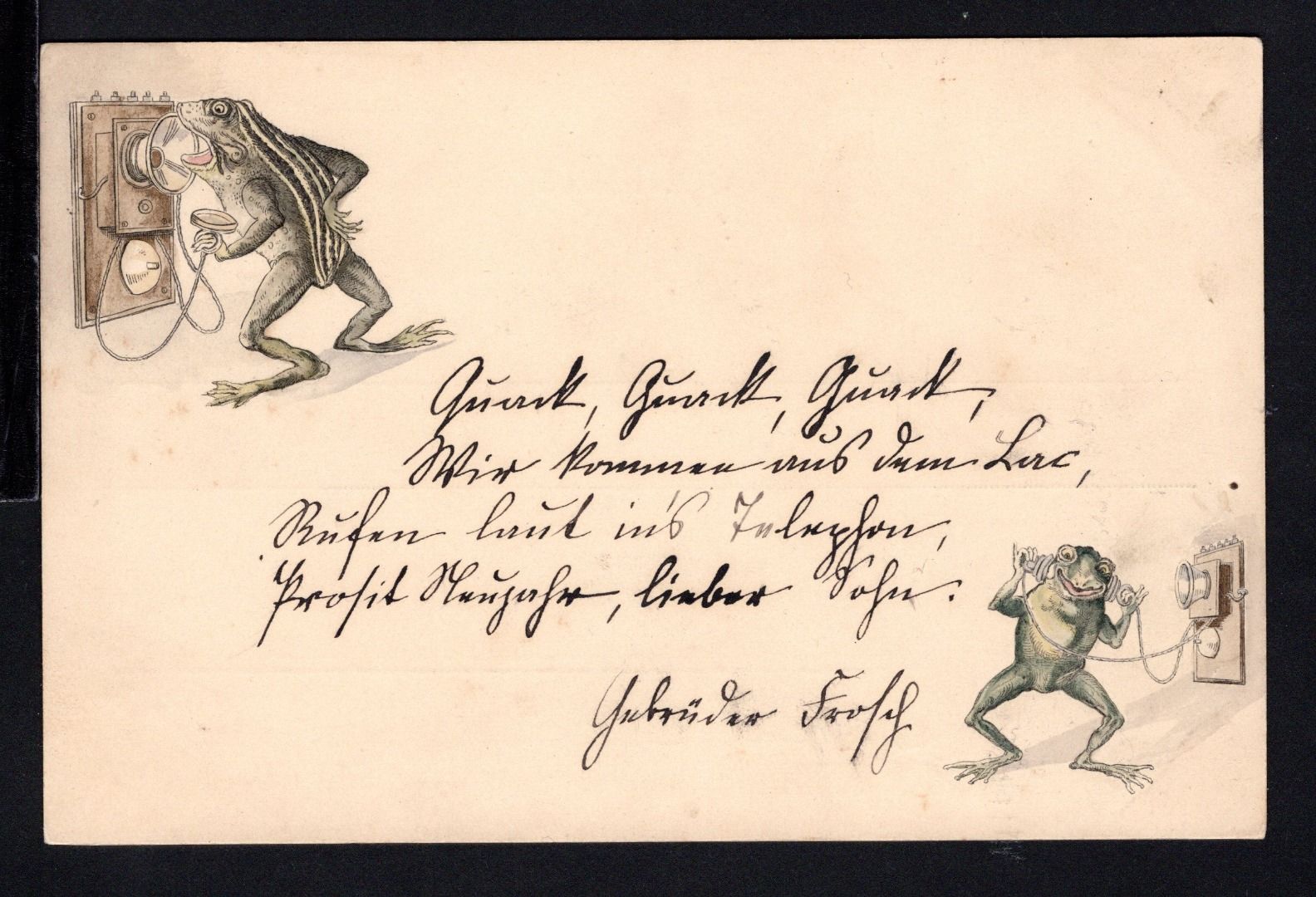 Prägepostkarte telefonierende Frösche
