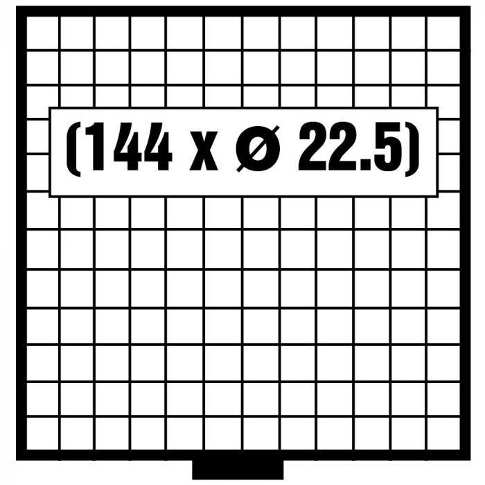 - Für 144 Münzen bis 22,5 mm Ø - Max. Füllhöhe: 9 mm, d.h. auch für Münzen in Kapseln geeignet.