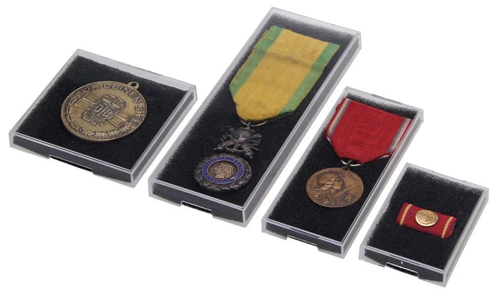 Der Orden oder die Nadel kann auf das Bodenteil gelegt oder aufgesteckt werden. Die transparente Abdeckung bietet bestmöglichen Schutz.