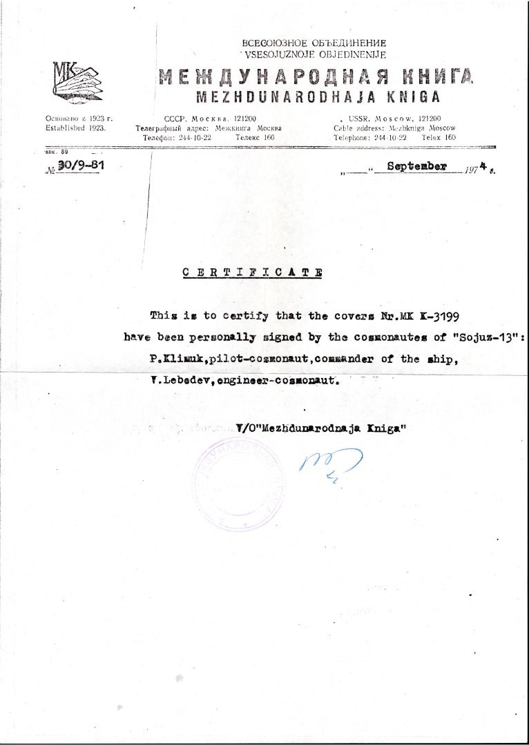 Original Unterschriften mit Zertifikat von Mezhdunarodnaja Kniga