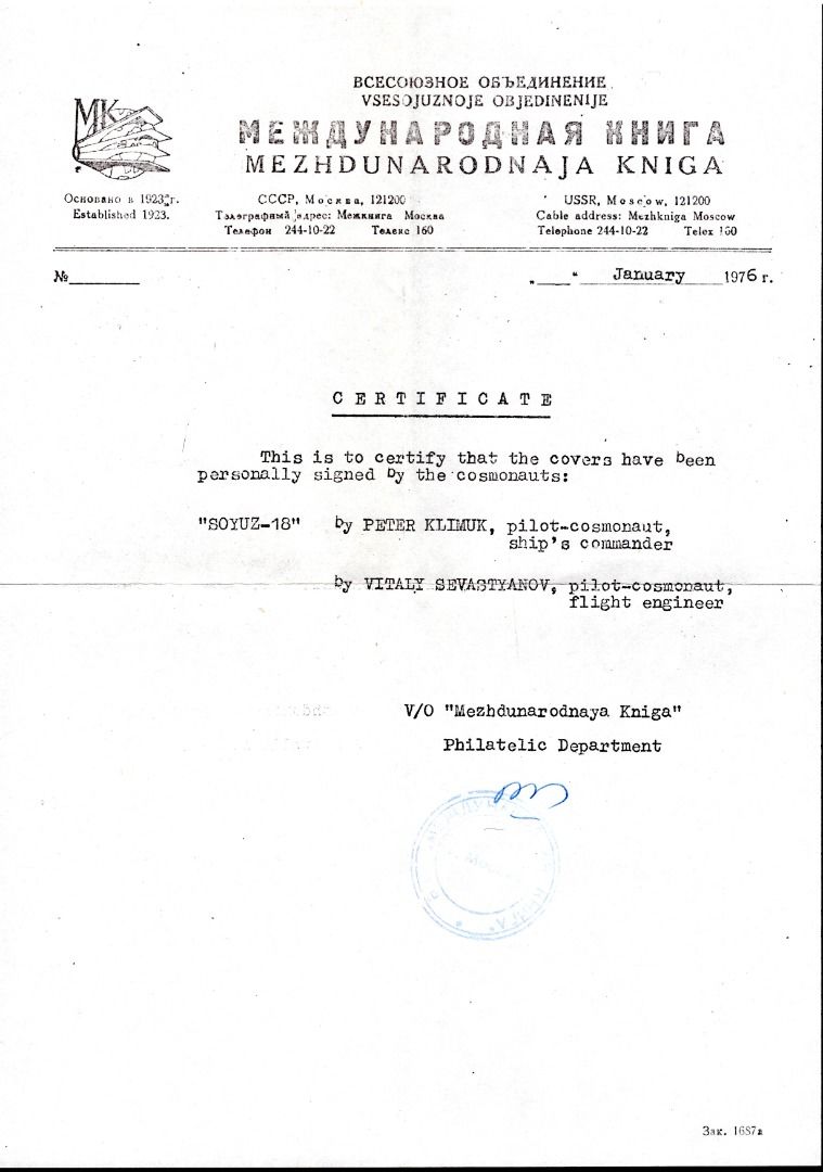 Original Unterschriften mit Zertifikat von Mezhdunarodnaja Kniga