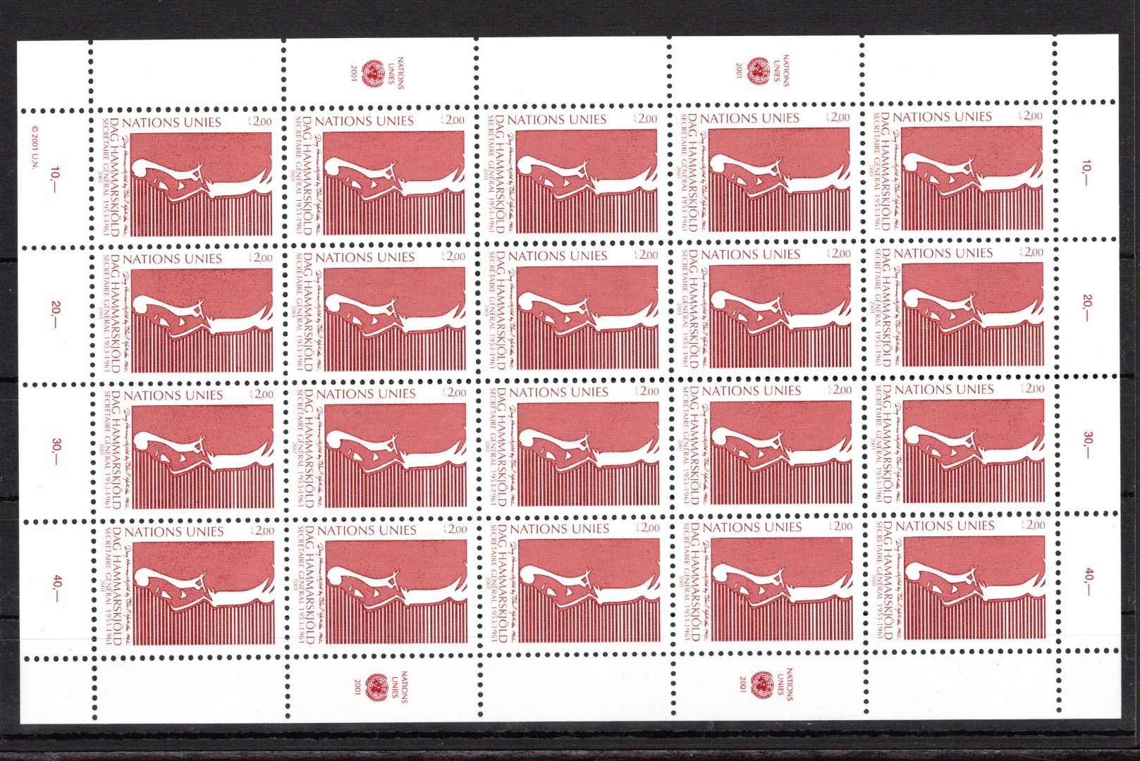 UNO Genf 20er Bogen MiNr. 423 postfrisch Dag Hammarskjöld