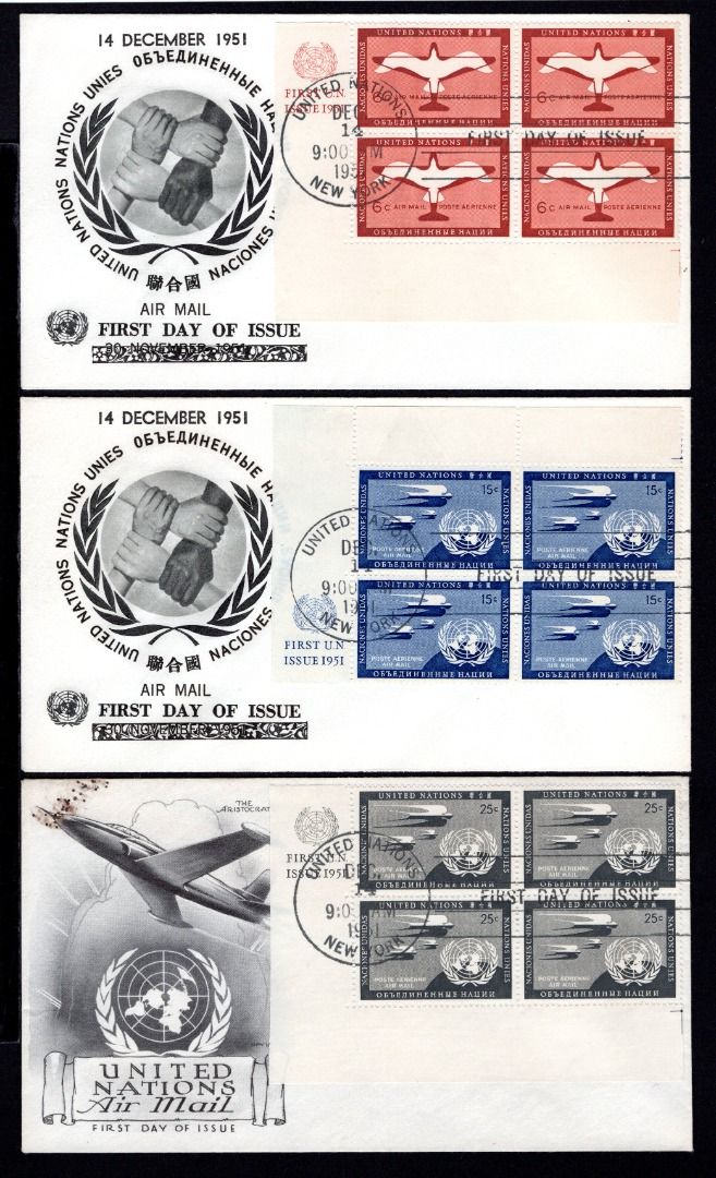 UNO New York MiNr. 12 + 14-15 RZf FDC 4er Blöcke auf New York FDC