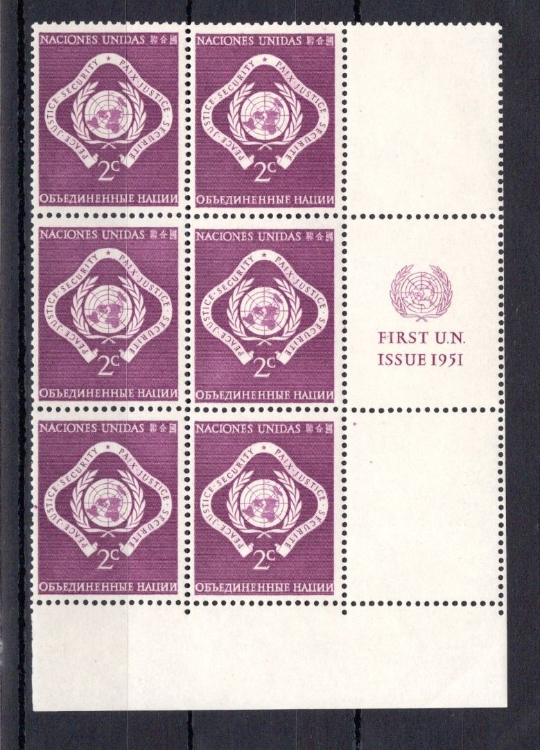 UNO New York MiNr. 3 RZf postfrisch 6er Block mit Leerfeldern